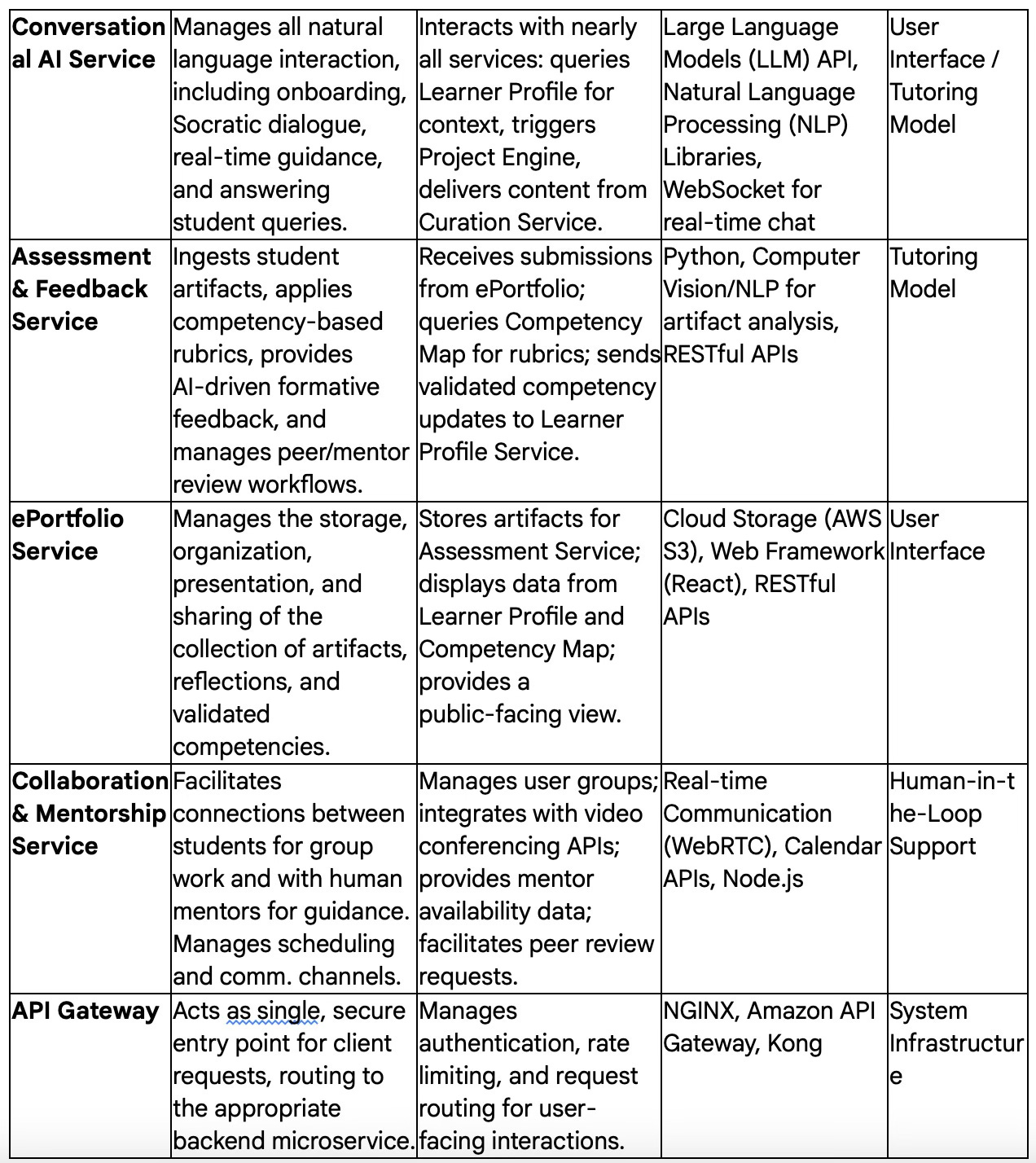 It’s a lot. But it’s a lot less than the mess that currently exists. Successful deployment would depend on maintaining consistent standards across the distributed network of mentors and Assessment Services within the microservices architecture. The platform would need to incorporate systematic mentor calibration protocols where faculty achieve validated inter-rater reliability scores before conducting summative assessments against the competency rubrics. The Assessment and Feedback Service should include automated monitoring capabilities that identify significant variations in competency validation patterns, triggering additional calibration interventions when needed. Quality assurance mechanisms such as random portfolio sampling for secondary review and mandatory documentation requirements for borderline assessments will ensure that the personalized learning pathways maintain rigorous academic standards. These operational safeguards preserve the integrity of the Competency Framework while supporting the flexible, student-centered approach that distinguishes this system from traditional course-based models.
