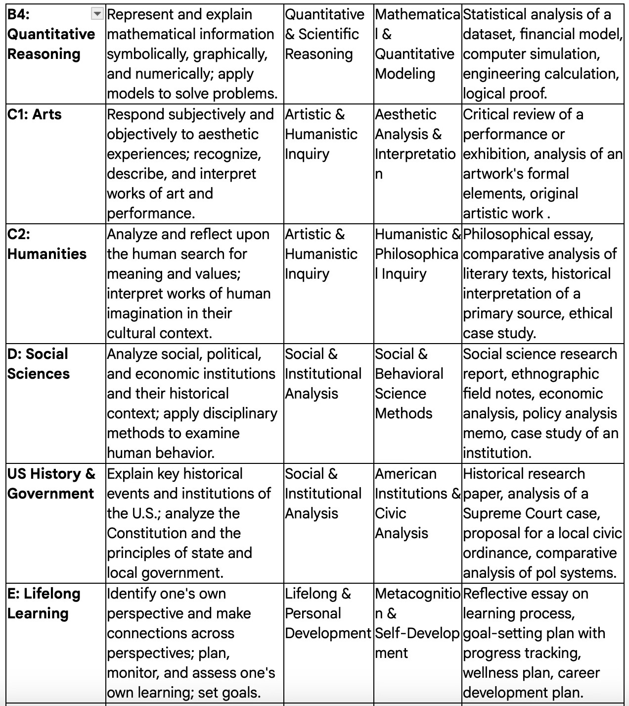 Artistic & Humanistic Inquiry (Area C)